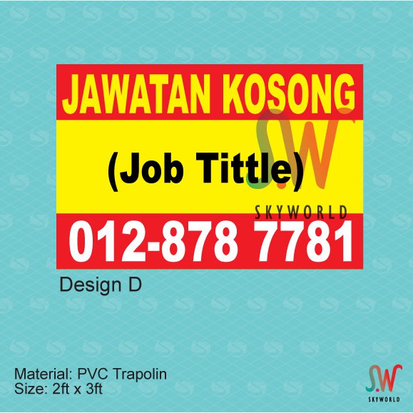 Vacancy banner printing banner jawatan kosong 聘请征聘布条打印 with ready template (no extra charge) price start by rm20 design design a design b design c .